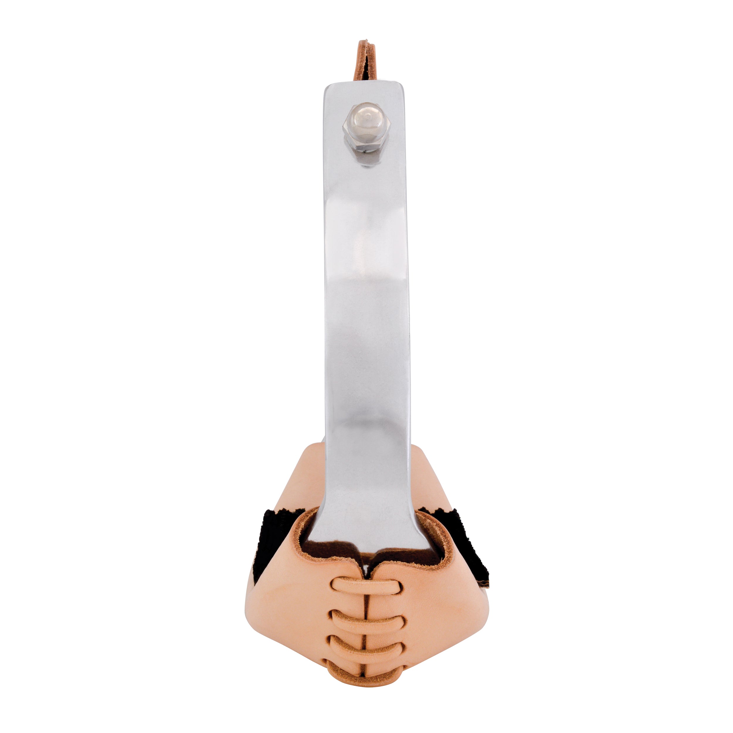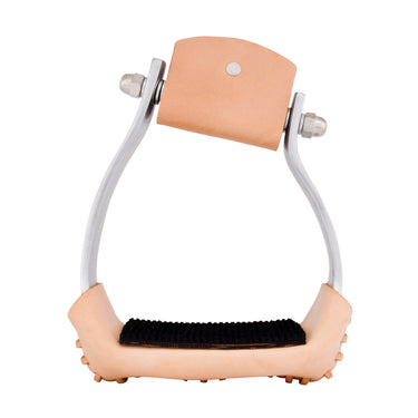 The Equi-Sky 3 1/4" Wide Slanted Aluminum Stirrup with rubber pad has a shape designed to relieve pressure in your leg joints while promoting stability. It has a wide leather-wrapped tread topped with a rubber pad for added grip.