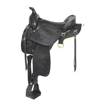 - Complete with leather-wrapped stirrups, Tough1® Quick Change stirrup buckles and rings for attaching must-have gear.
