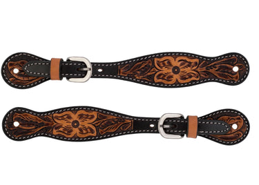 PRODUCT DESCRIPTION: Weaver Leather® Ladies’ Turquoise Cross Floral-Tooled Spur Straps