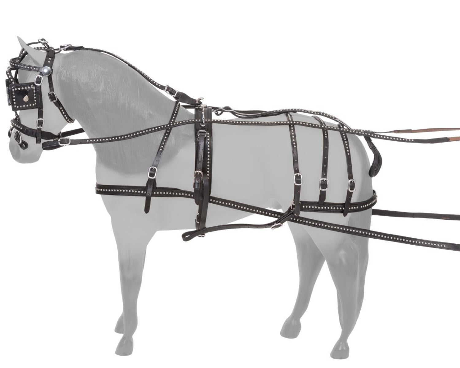 - Breast-collar style with fully adjustable surcingle back pad and cart loops.