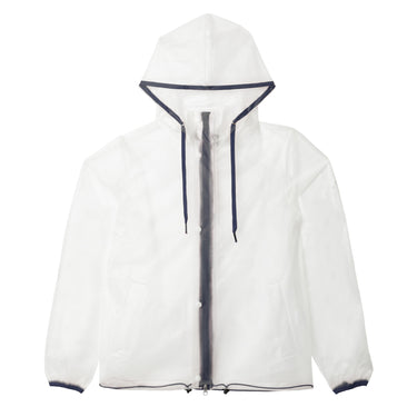 The detachable hood is lined with breathable mesh material for comfort. Two pockets, elastic cuffs and drawstring hem.