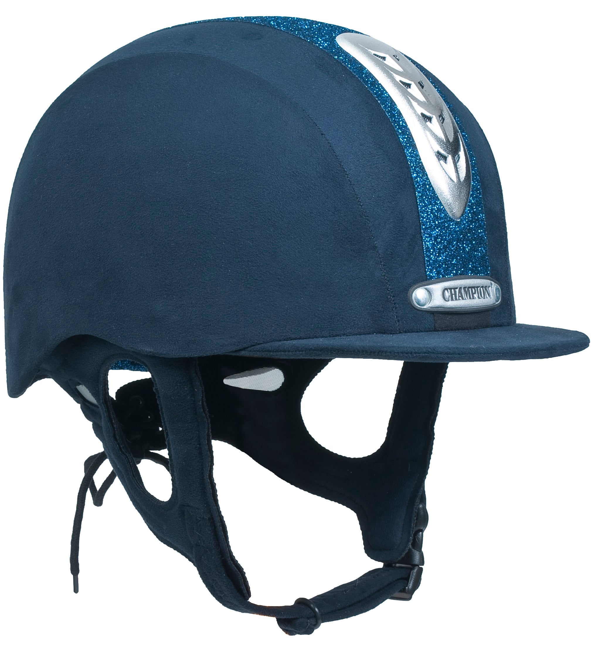 Made to fit round heads, this Champion® Adults’ X-Air Dazzle Plus Helmet** has an eye-catching, sparkling, center panel and a durable, synthetic nubuck finish on a lightweight, injection-molded ABS shell. An integrated, highly ventilated airflow system keeps you cool while riding. A four-point padded synthetic suede harness offers supreme comfort and security. Handmade in Great Britain, this equestrian helmet features crown comfort padding in high-tech breathable microfiber.