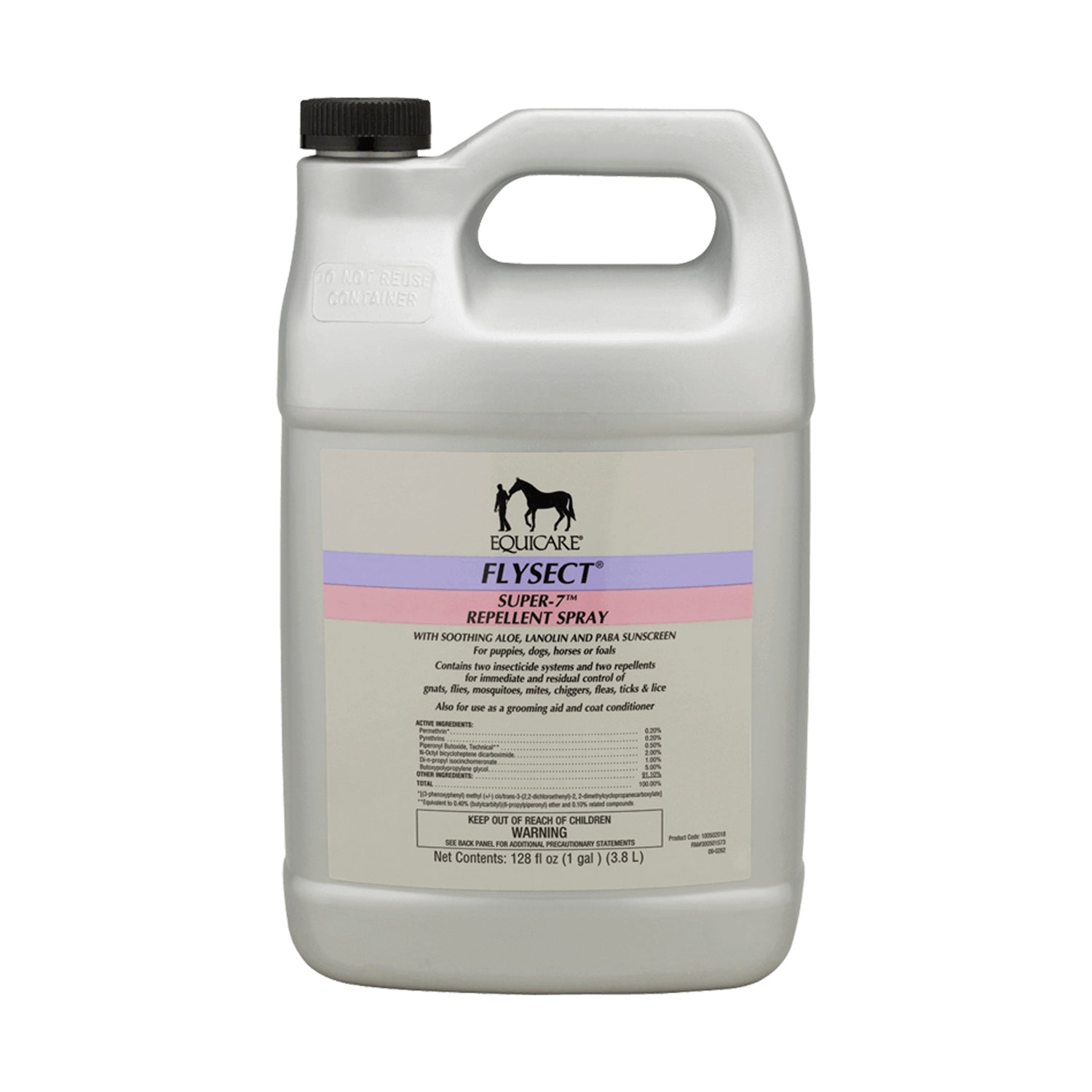 Farnam® Equicare® Super-7 Repellent Spray provides immediate and residual control of gnats, flies, mosquitoes, mites, chiggers, fleas, ticks and lice. Formulated pyrethrins and permethrin, Super-7 also contains aloe and other emollients to help moisturize the horse’s skin. Added PABA sunscreen protects against harmful UV rays. Gallon.