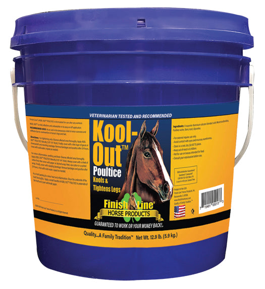 Finish Line® Kool-Out™ Poultice for horses is a creamy, smooth, non-medicated formula designed to help with minor stiffness and soreness due to overexertion. Mild enough for everyday use and for horses with sensitive skin, Kool-Out can be used over minor nicks, cuts, blisters and more. It cools and tightens a horse’s legs after workouts, performances, events and races.
