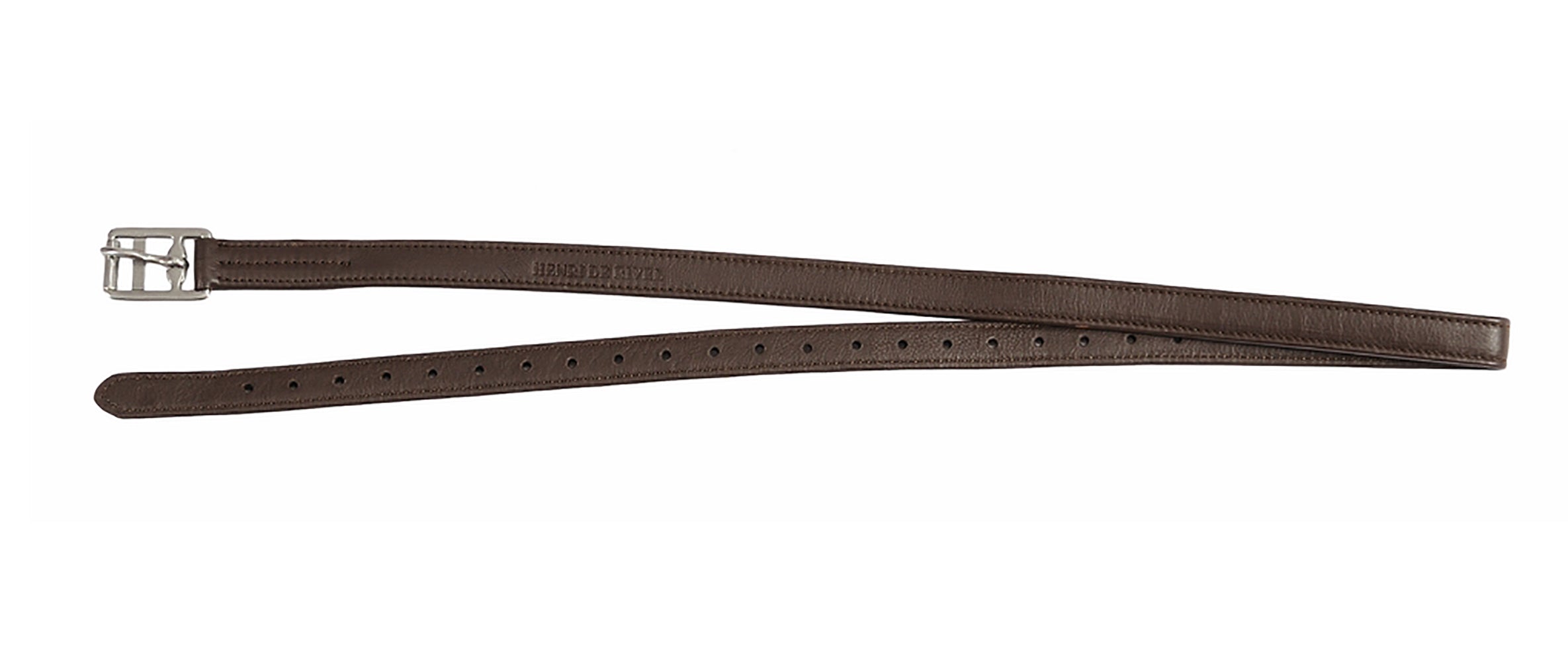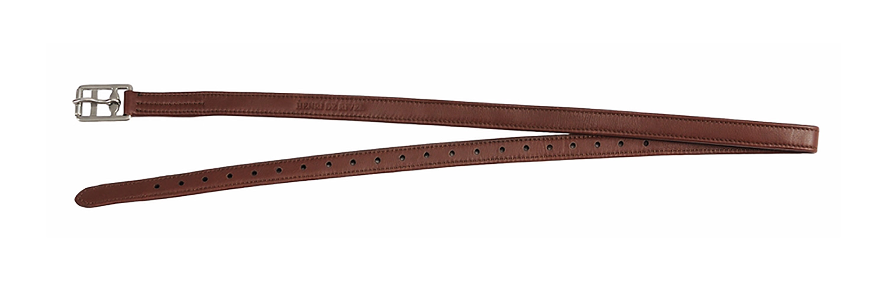 Henri de Rivel Triple Covered Stirrup Leathers stretch less than traditional stirrup butts. They are made from high-quality leather with a nylon lining to resist stretching. Fitted with flat, stainless steel buckles. Styled for English saddles and offered in classic colors.