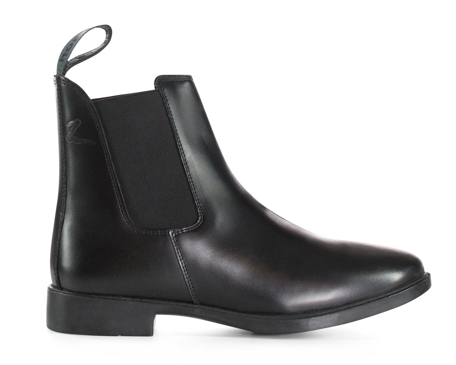 Horze Kids' Signature Jodhpur Boots are comfortable, lightweight and durable enough for daily use. Convenient slip-on style means no more struggling with untied laces or faulty zippers. Enjoy the ease and comfort of this supple PU leather pull-on paddock boot with ribbed elastic sides for flexible support and luxurious Cambrelle lining for a cozy feel. Kids love the Horze signature Z logo embossed on the heel.