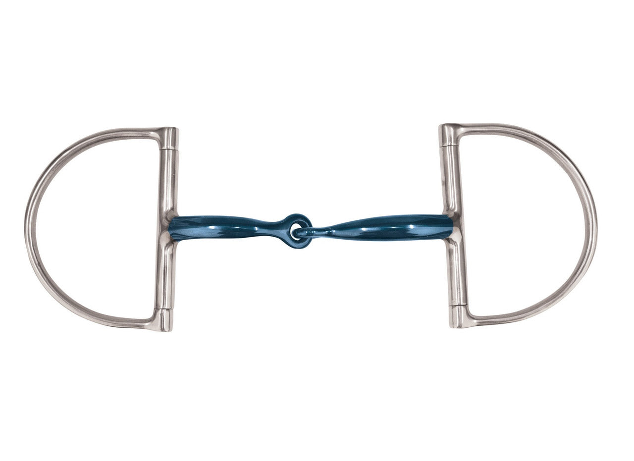 A versatile and practical bit, the JP by Korsteel® Blue Steel Jointed D-Ring Bit offers good balance and a comfortable feel. As the blue steel finish oxidizes, it creates a sweet iron flavor that encourages the horse to salivate and soften.