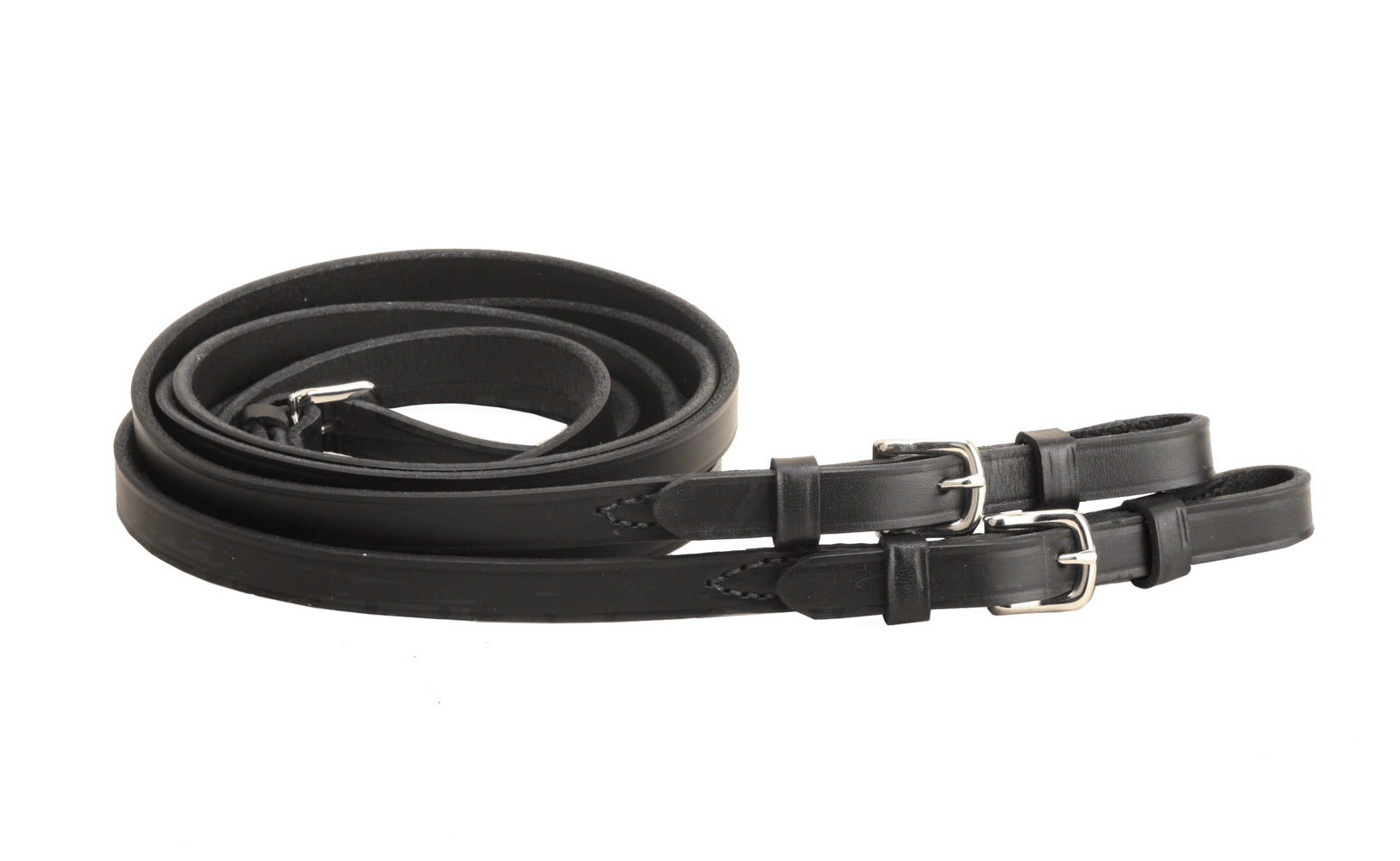 From Tory Leather Company, these 3/4" x 60" Plain Reins with Buckle Bit Ends feature beautiful quality creased leather. Perfect for training. Stainless steel hardware includes buckles at bit ends and center.