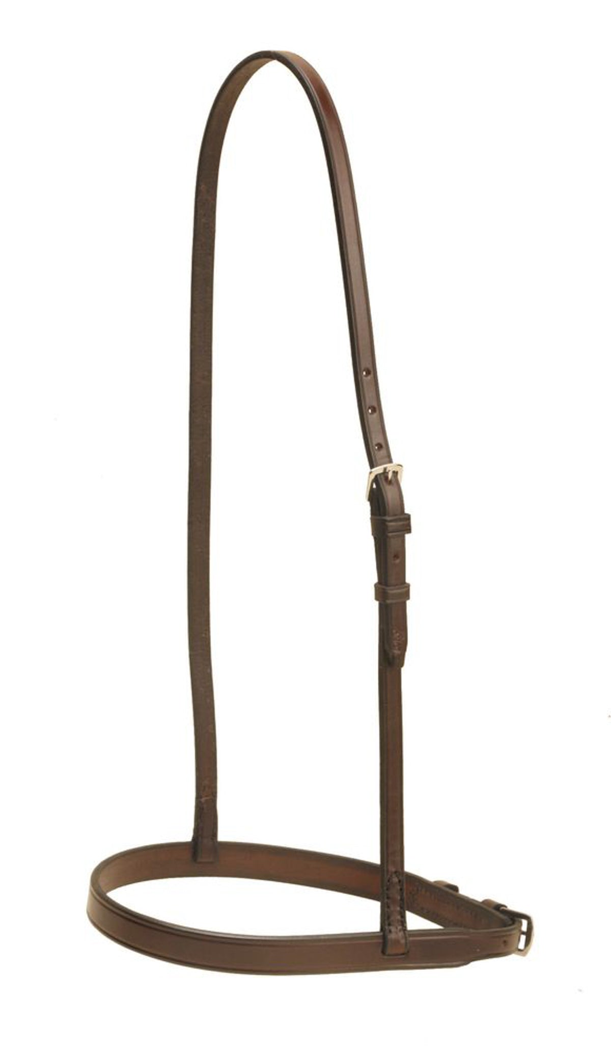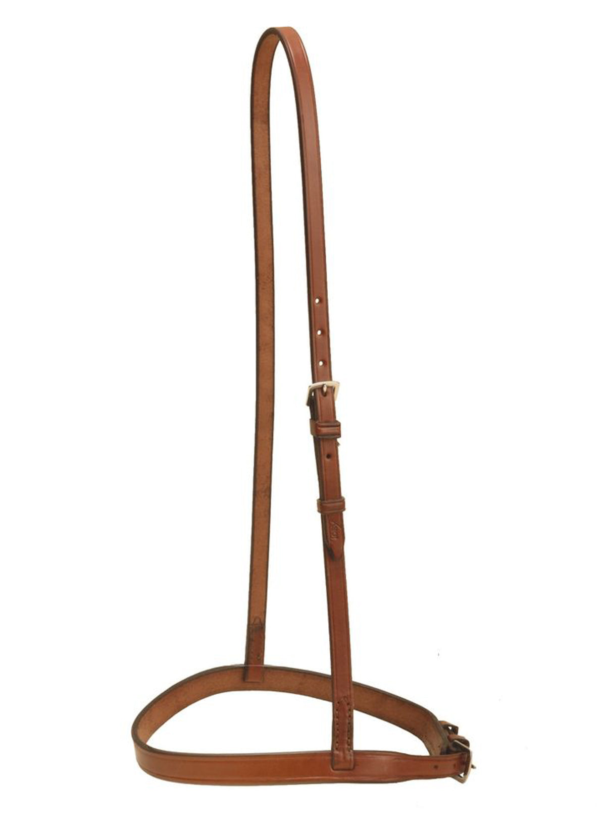 Tory’s Single-Ply Caveson is made in the USA from fine American bridle leather and nickel hardware. It features a 1” wide creased nose and sewn keepers. Fits any traditional crown bridle.