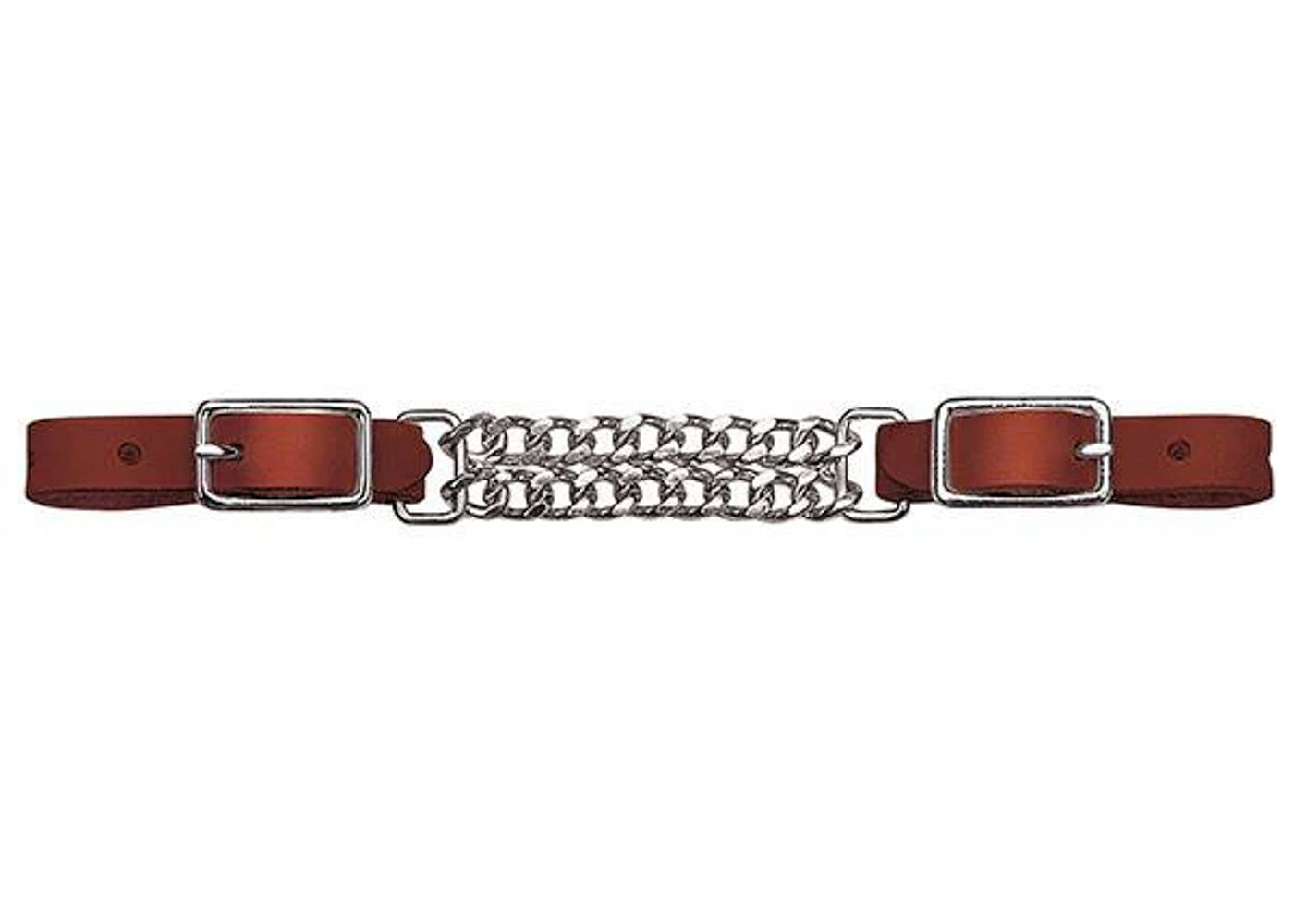 Weaver Leather® 4 1/2" Double Flat-Link Chain & Bridle Leather Curb Strap offers an increased level of contact with two rows of curb chain.