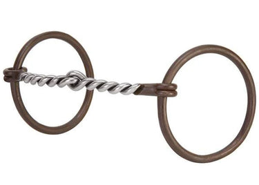 Weaver Leather® Professional Ring Snaffle Bit with stainless steel 5" Twisted Curved Mouth has antiqued, 3" diameter loose rings.