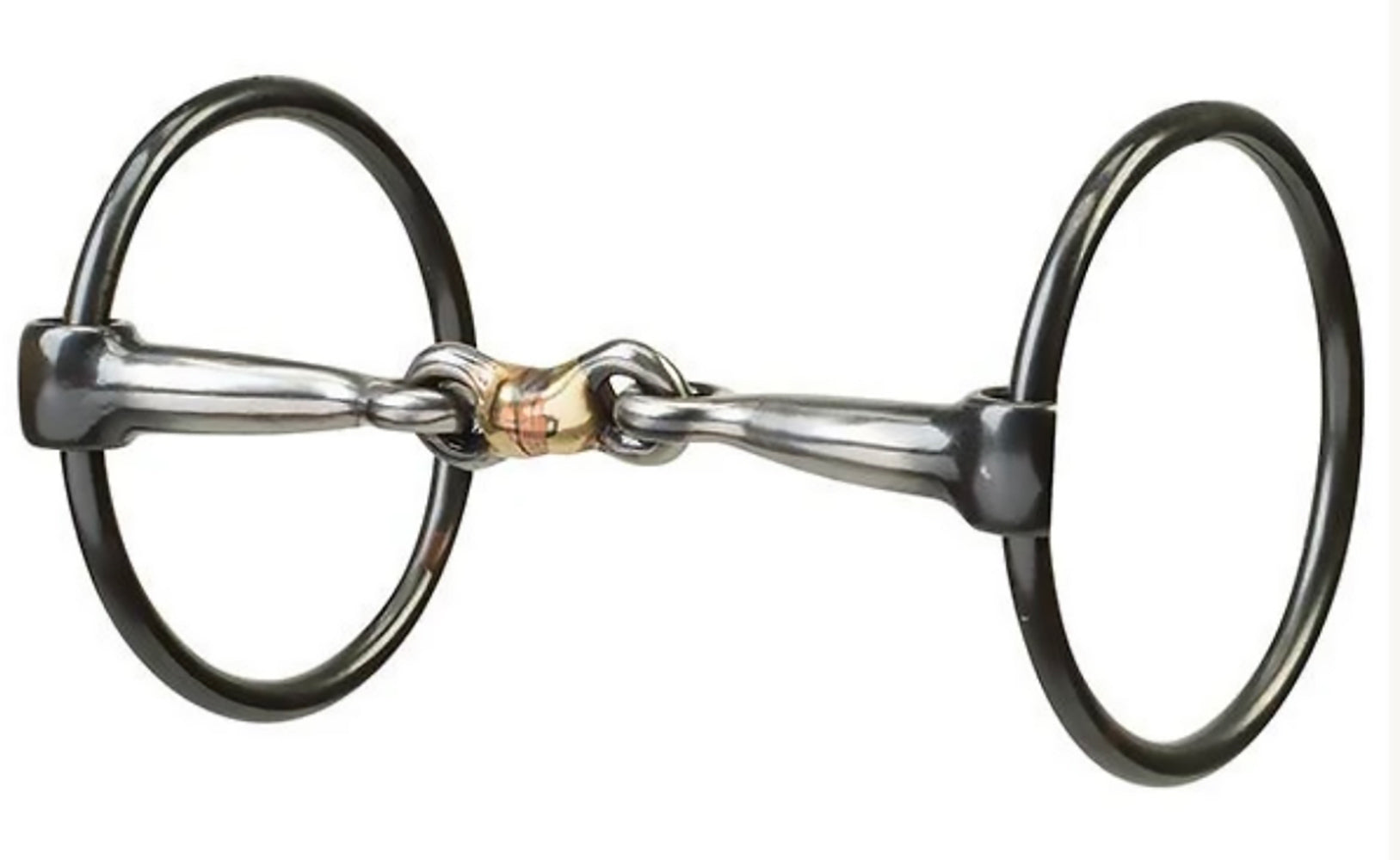 PRODUCT DESCRIPTION: Weaver Leather® Ring Snaffle Bit, 5" Sweet Iron Dog Bone Mouth with Copper Inlay