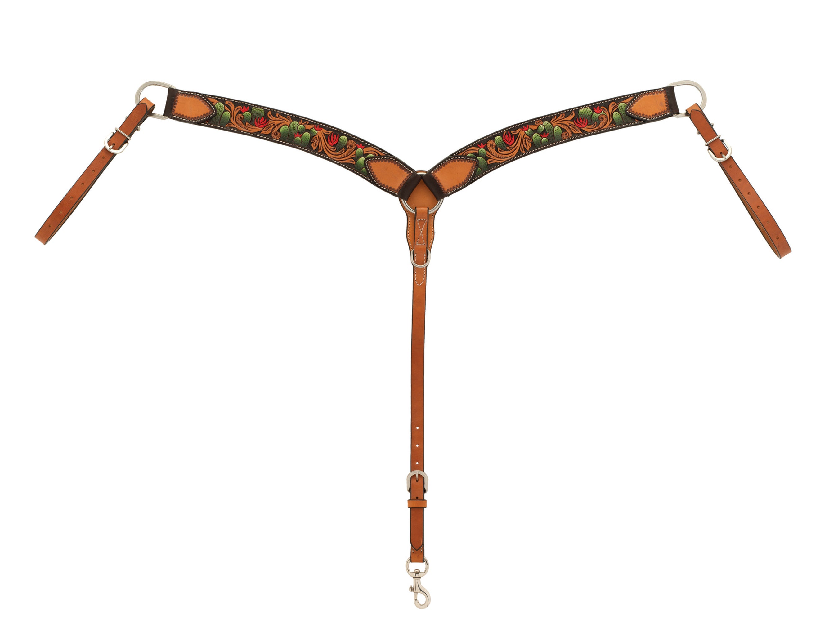 Weaver Leather® Turquoise Cross Cactus Tooled Contoured Breast Collar is made from light-oiled leather with a hand-painted finish to highlight beautiful cactus carving.