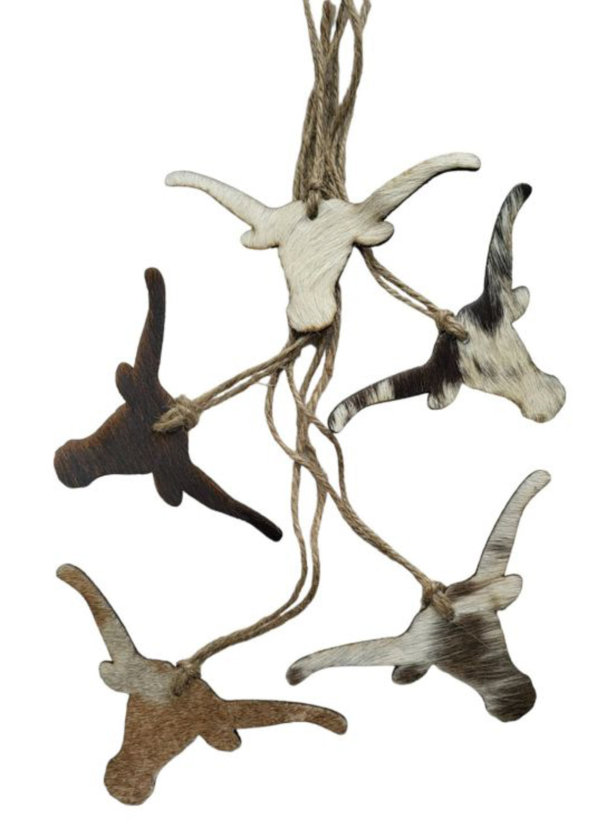 Hang this Western Cowhide Leather Christmas Ornament on your tree, wreath or mantle, or give it as a gift! Tie one to a bottle of wine or a gift bow to elevate your holiday presents.
